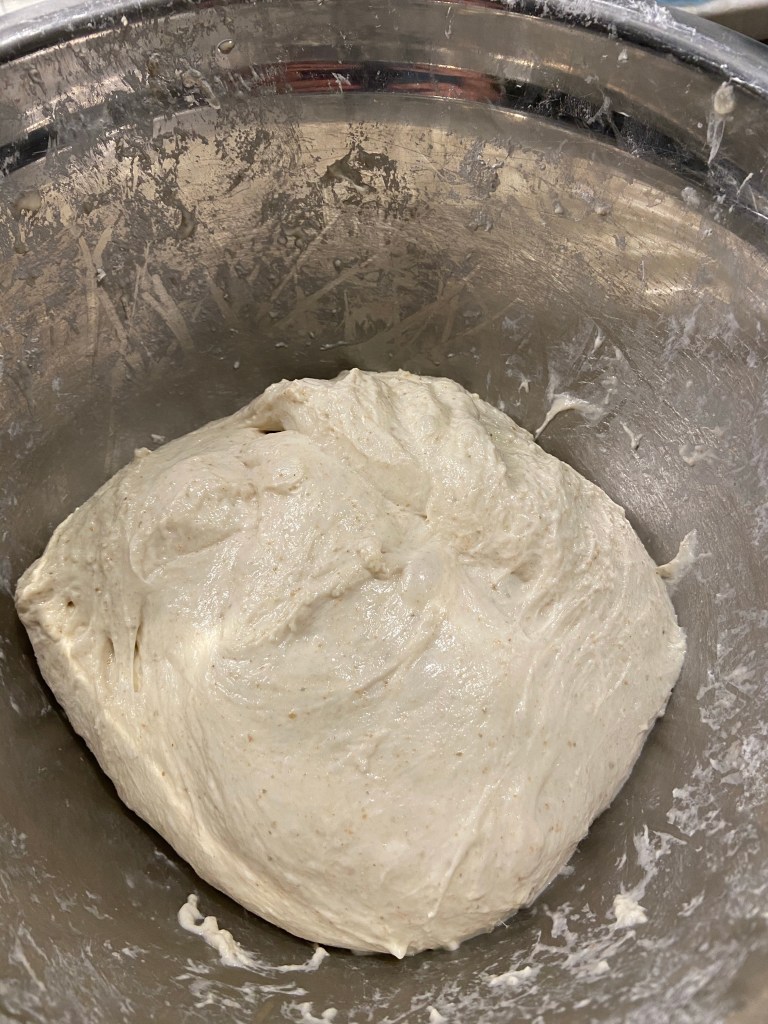 Repeat this process until the dough is smooth and elastic. After 30 or 40 wedgies, the dough will feel thicker and smoother in your fingers.